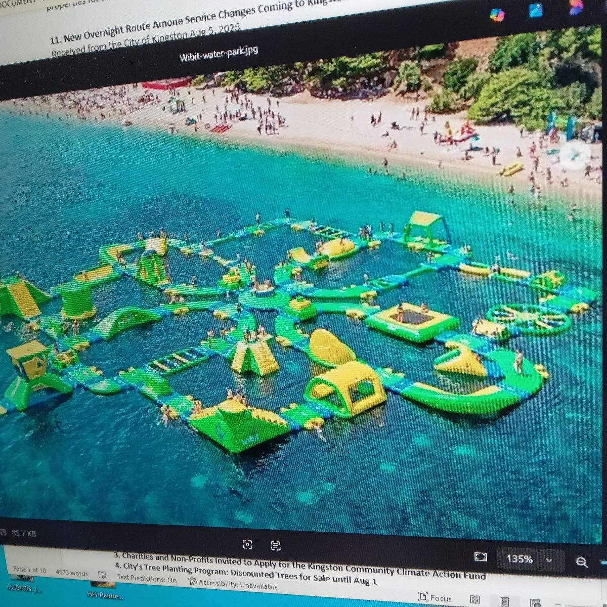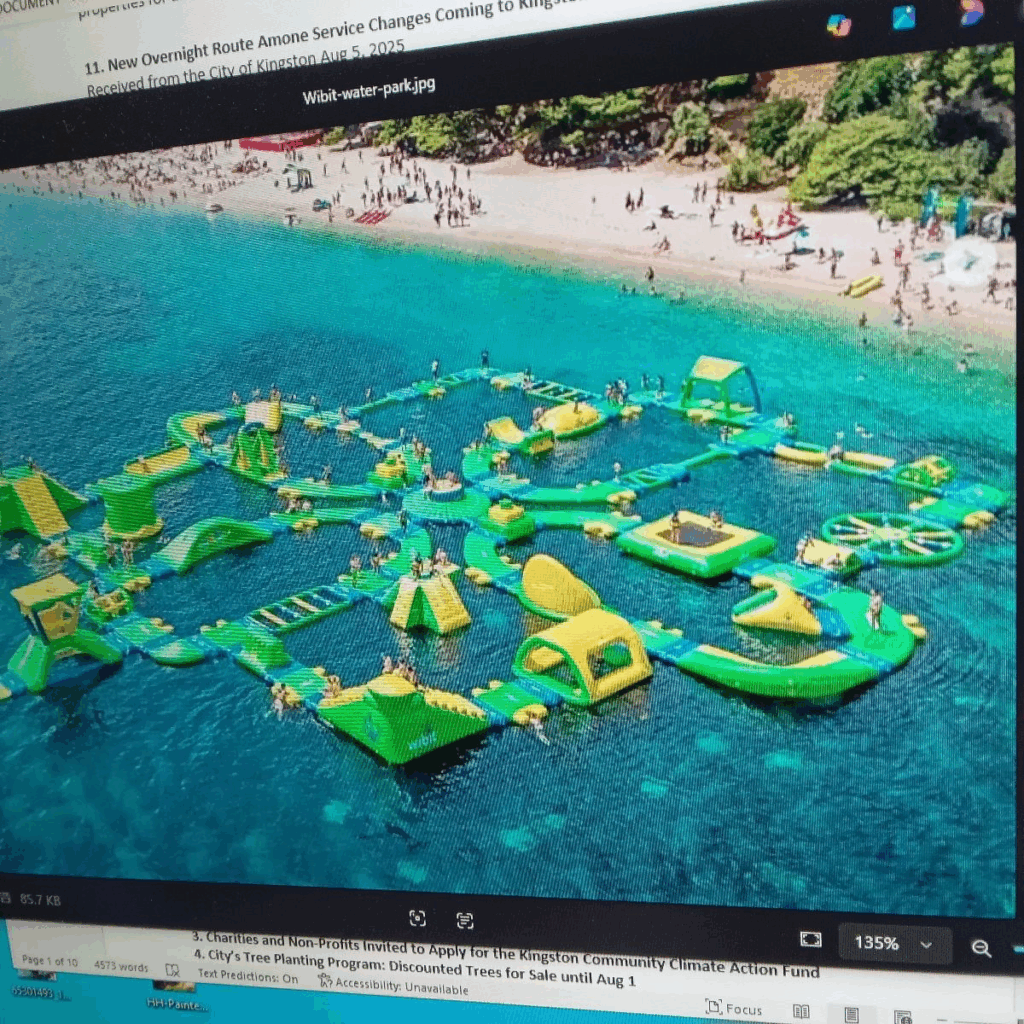 Thanks so much Friends of Battery Park for the picture of what might be coming to Kingston’s waterfront at Battery Park. City Council approved “additions” to the previously approved plan – including an inflatable water park amenity, naming rights (Patry) alongside Battery Park and commercialization of the space scheduled for the summer of 2027. Members of the Friends of Battery Park have a number of real concerns. See Item #9.